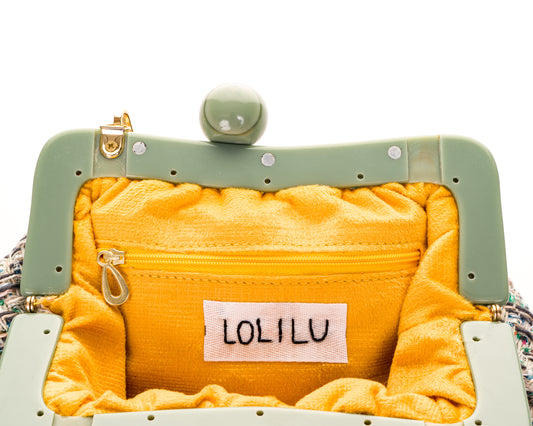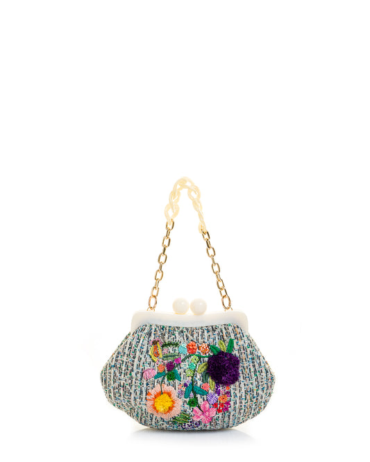Tweed Jaspeado Bordado a Mano Manija Verde