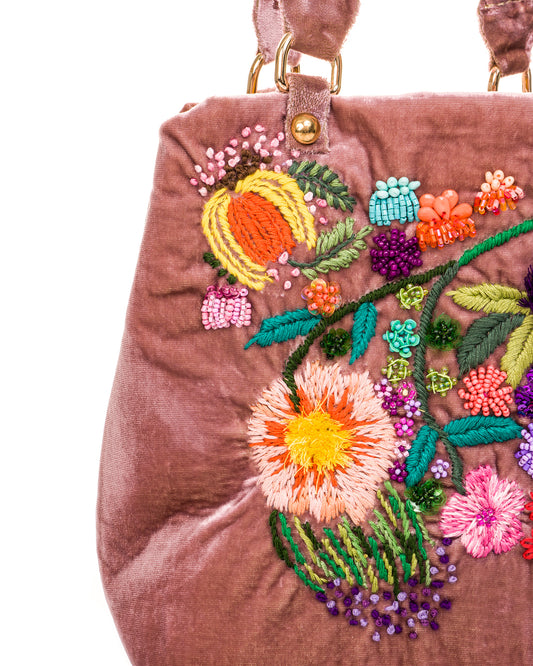 Flores Bordadas a Mano Sobre Terciopelo Color Paloderosa