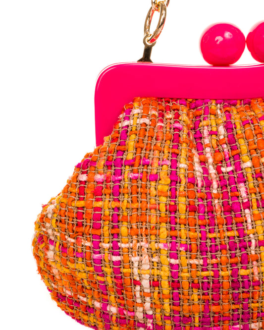 Tweed Naranja y Fucsia con Manija Acrilica Fucsia
