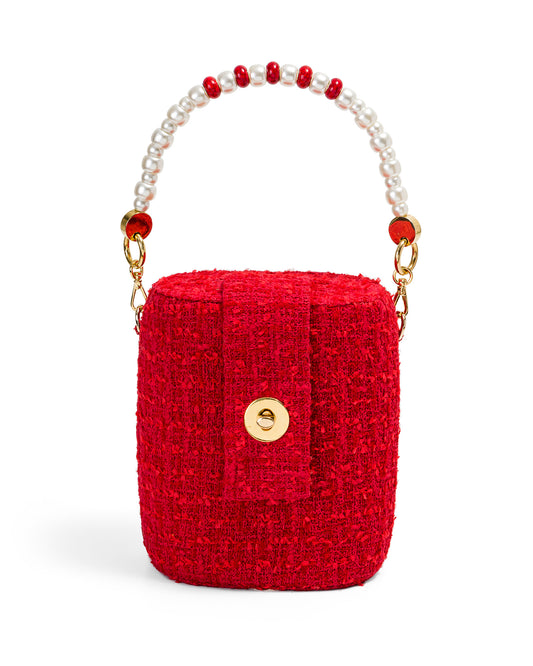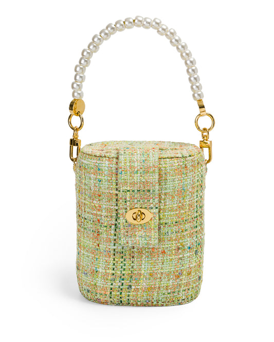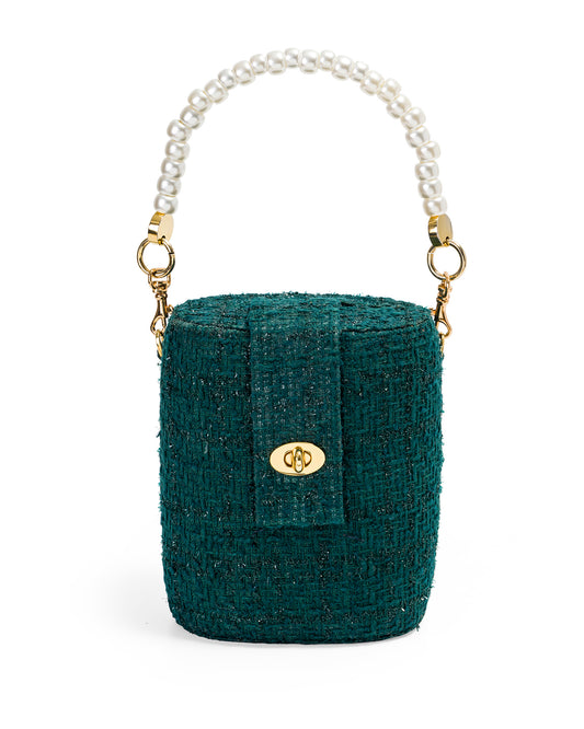 Bolso Baúl Tweed con Perlas en Verde Esmeralda
