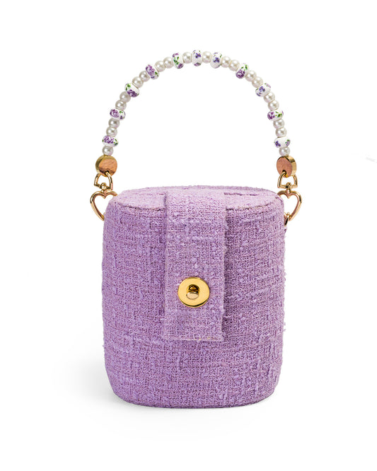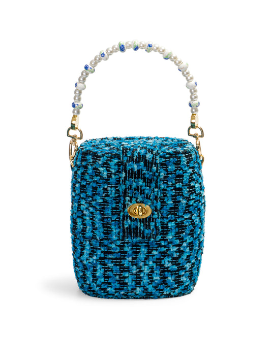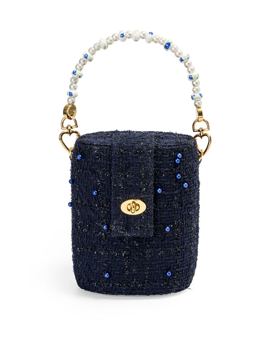 Bolso Baúl Tweed con Perlas en Azul Noche