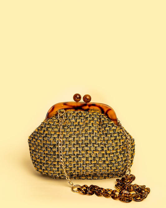 Tweed Amarillo y Negro con Manija Acrilica Color Carey
