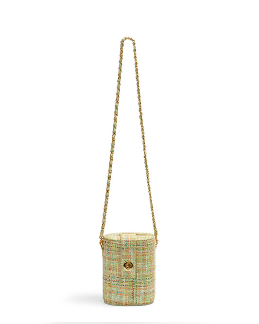 Bolso Baúl Tweed Verde Claro Cadena Larga y Corta